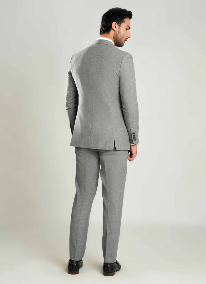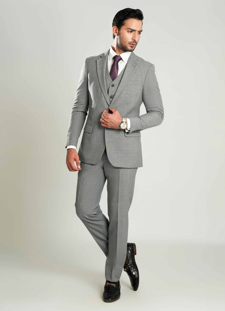 Stylish grey 3-piece suit crafted in poly wool. Perfect for office wear, business meetings, and events.