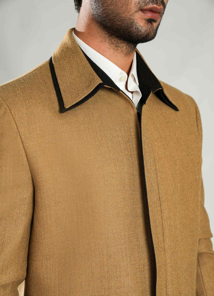 Brown Checks, Wool Rich Worsted Tweed Double Collar Jacket