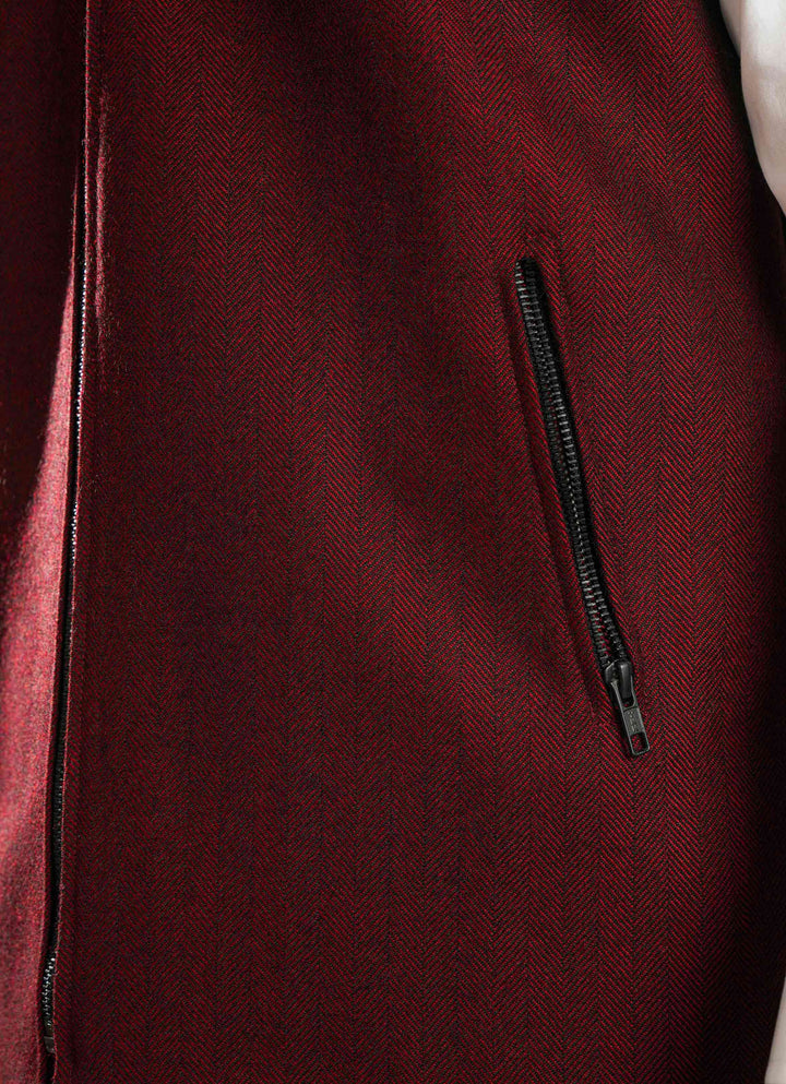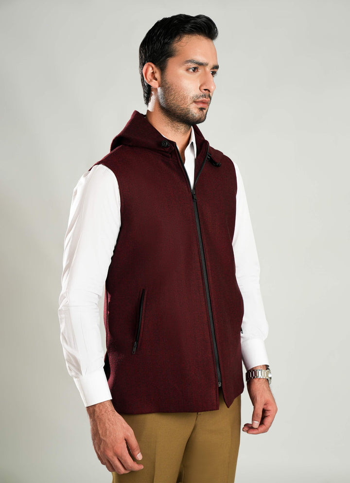 High Neck Sleeveless Hoodies - Worsted Tweed Maroon Herringbone