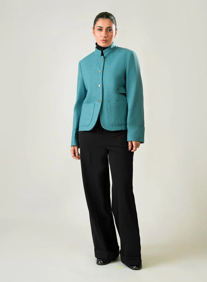A cool and cozy ladies' jacket for a comfortable winter look. This cadet blue plain jacket is made from warm, soft fabric, perfect for everyday wear and style.