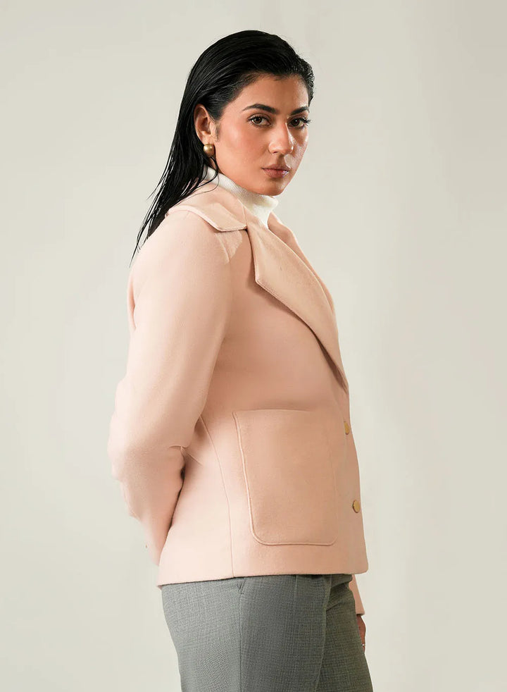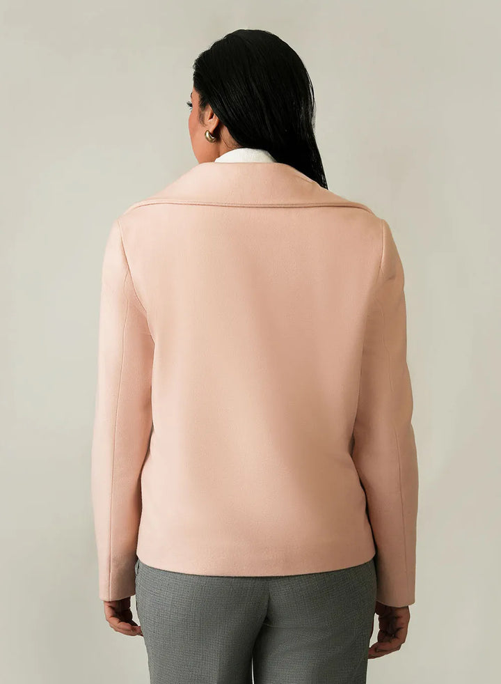 Add a soft touch of color to your winter outfits with this Ladies Jacket. It features a lovely Light Pink plain design and is crafted from warm PV (Poly Viscose) Jacketing material for everyday comfort.
