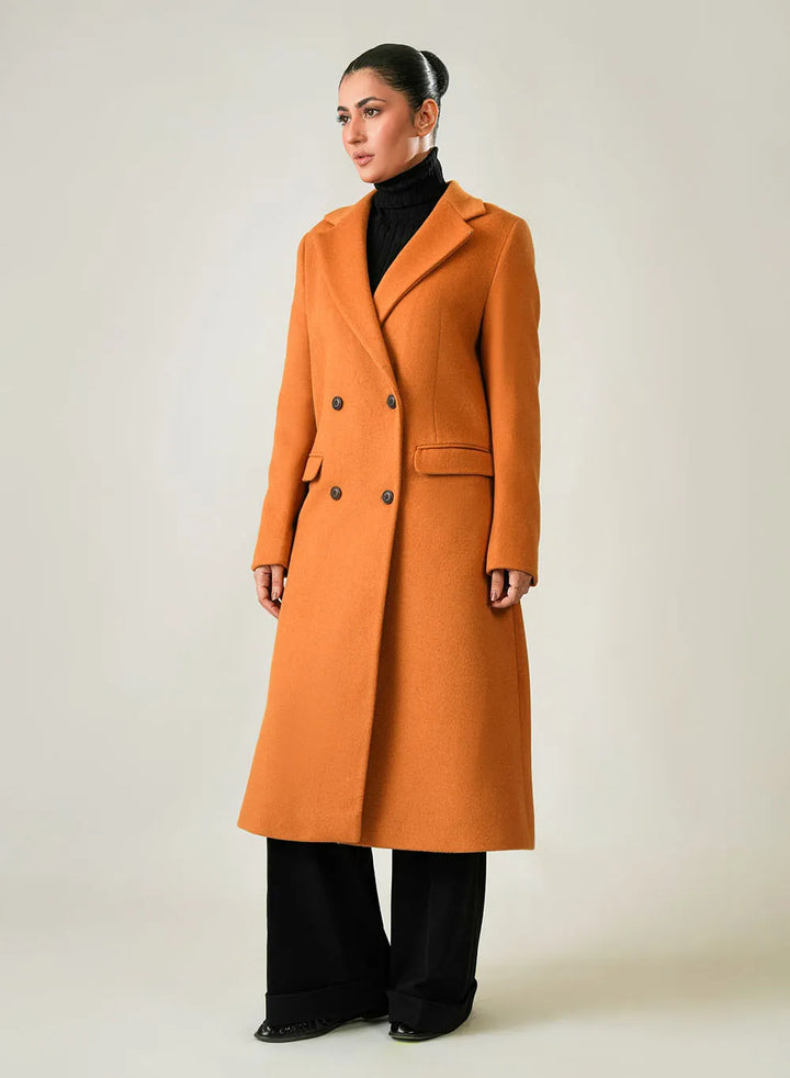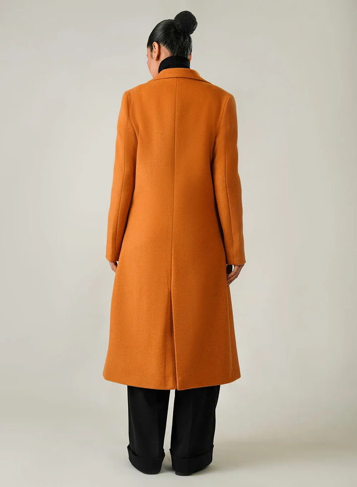 Ladies Long Coat - Lapel Collar Camal Brown Plain