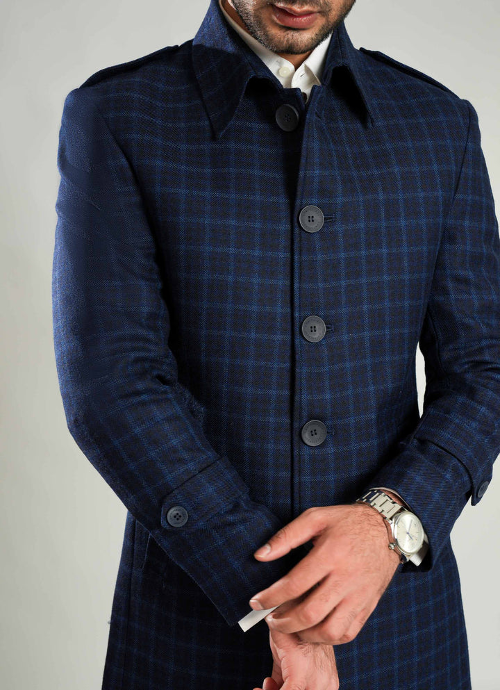 Stay stylish and warm this winter with the Lawrencepur Worsted Tweed Collection. Made from wool-rich fabric, these men's long coats feature textured patterns like checks and self-stripes in warm, seasonal colors. Perfect for layering over any outfit.