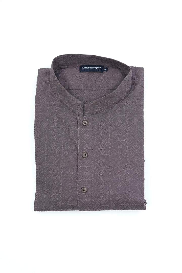 Short Kurta - Self Embroidery Cotton Chocolate Brown Design