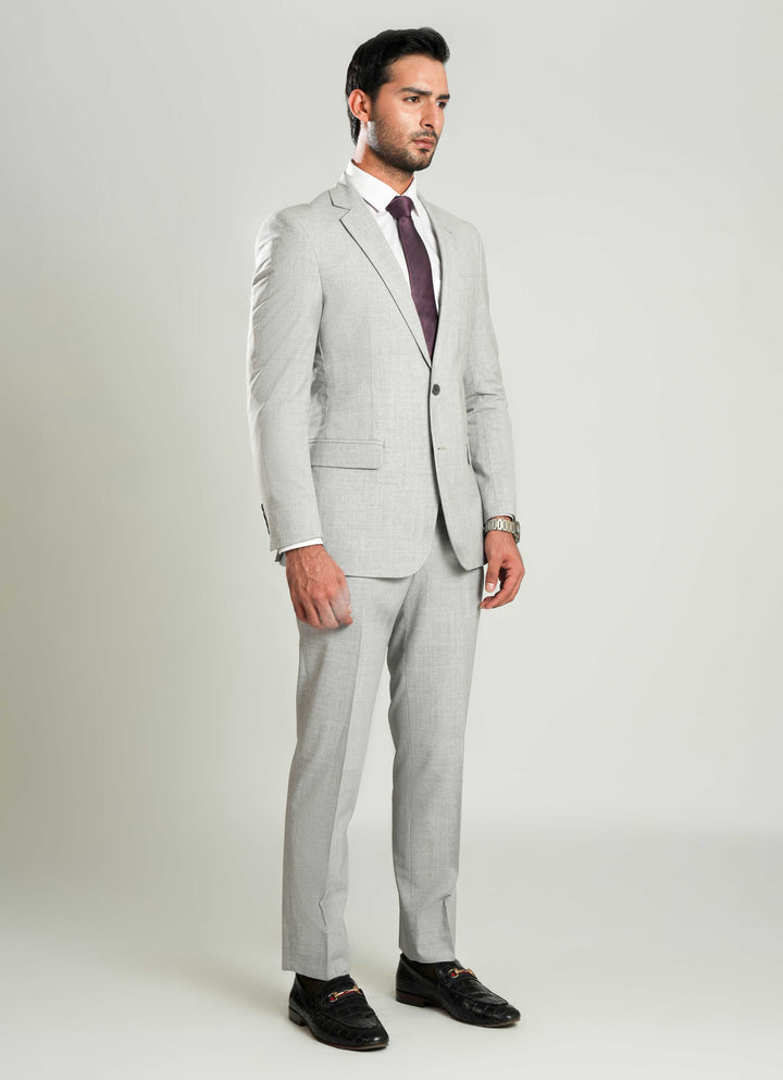 A classic men’s 2-piece suit in medium grey, featuring a plain design for a clean and timeless look. Includes a tailored blazer and matching trousers, perfect for business, formal events, or smart occasions.